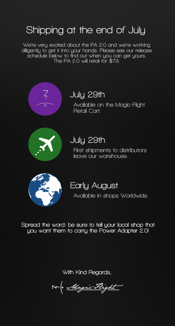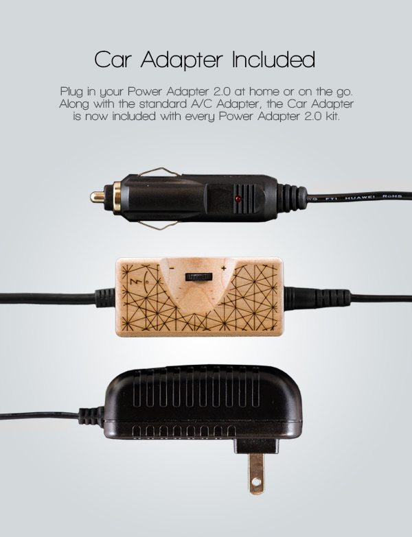 The updated version of the popular power adapter accessory has been officially announced! Shipping to both customers and retails at the end of July the updated power adapter features an updated battery plug which will ensure a tighter fit with a solid connection. Also updated is the power selector housing which has forgone the aluminum tube in lieu of a wooden housing with what looks to be a painted wood or plastic bottom cover. The updated power adapter will now come packaged with the car adapter as well, which was previously a separate purchase ($6.95)