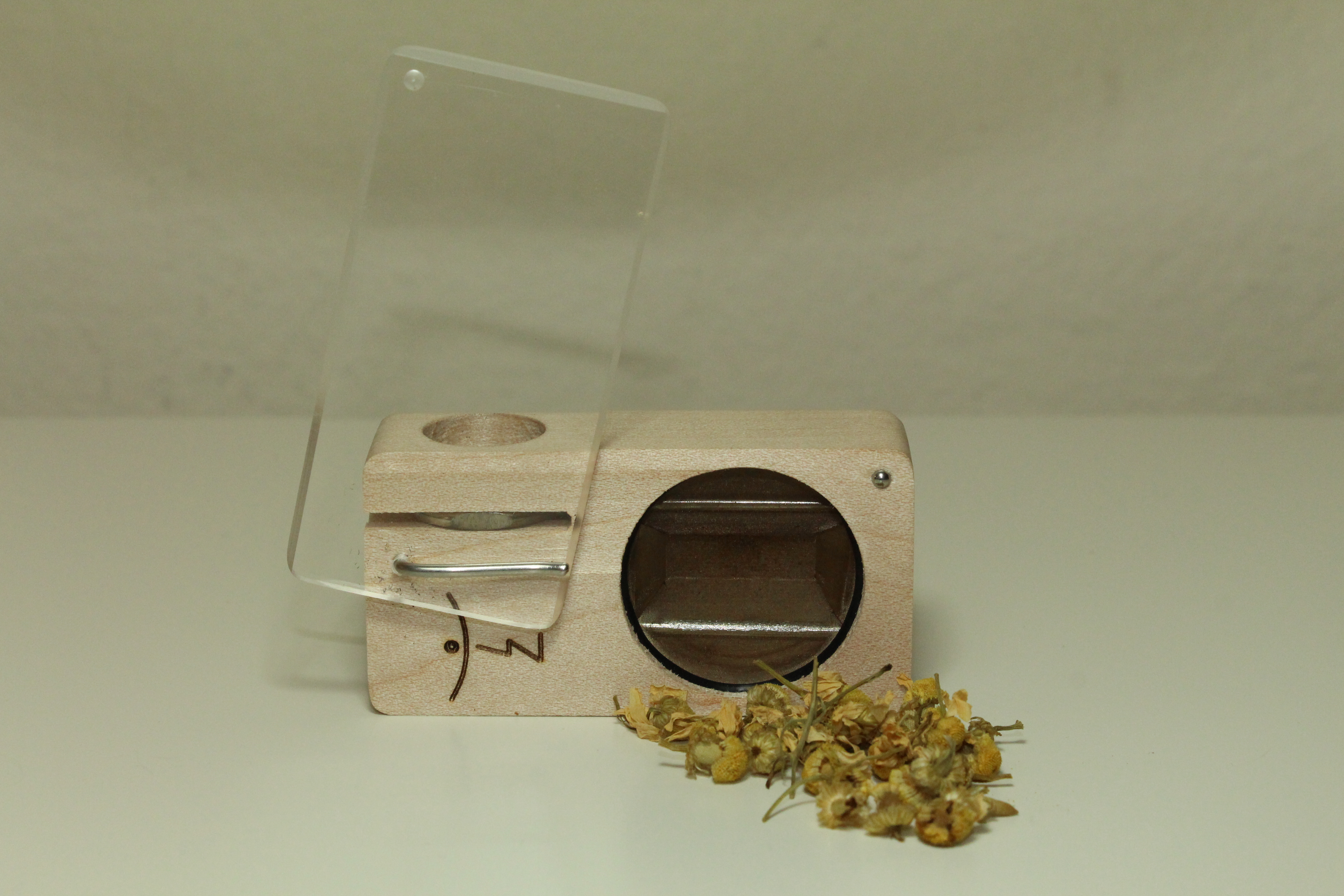- Easy sliding Plexiglas lid locks your herb contents in place.
