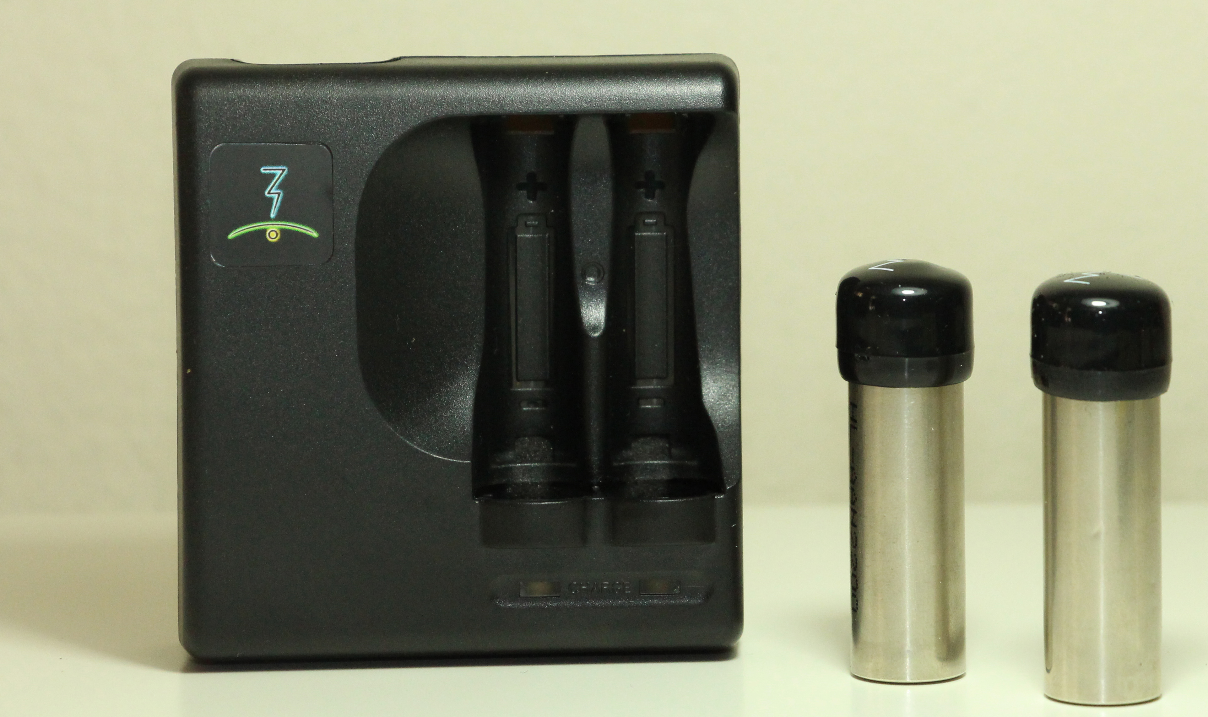 2 x Glyph NiMH Batteries engraved on the negative end (w/ black rubber caps and a white glyph)