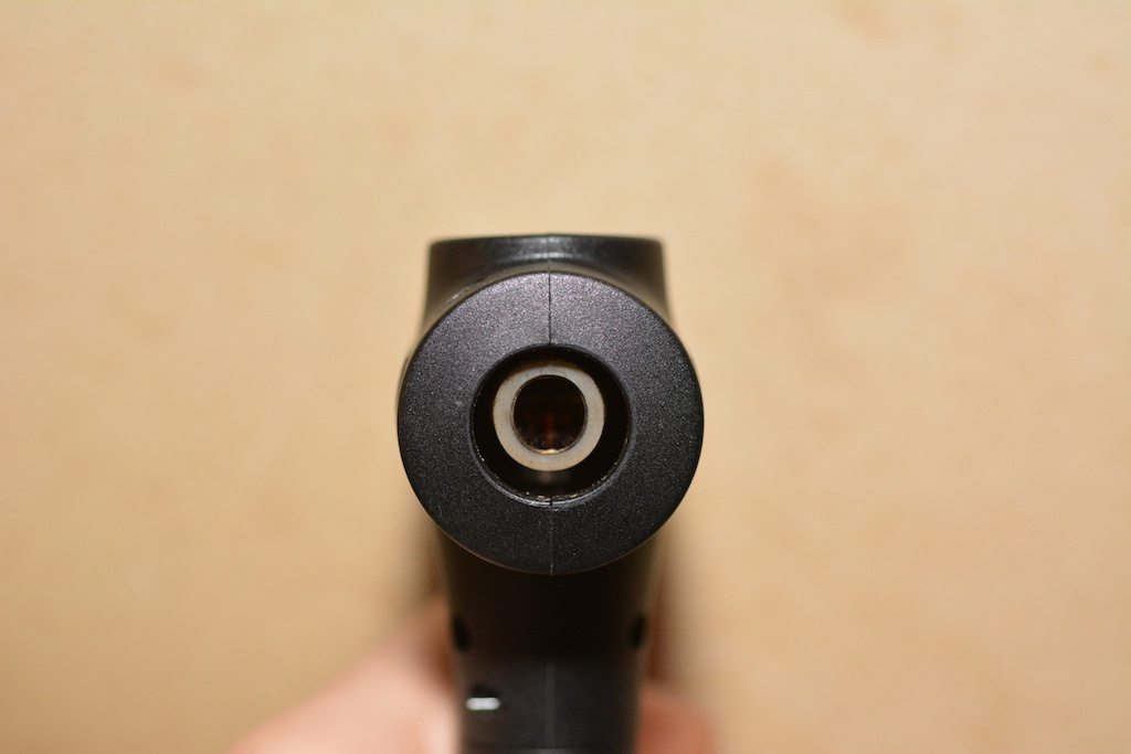 As I mentioned earlier, the Hammer works by heating a stainless steel heat exchanger. The heat exchanger acts as the air path, and is constricted in the center to properly heat the air passing through. The exhaust fumes from the torch as then vented around the heat exchanger and out the top of the Hammer (when held upright). This means that the exhaust fumes and the air intake should be far enough apart to prevent any cross contamination.